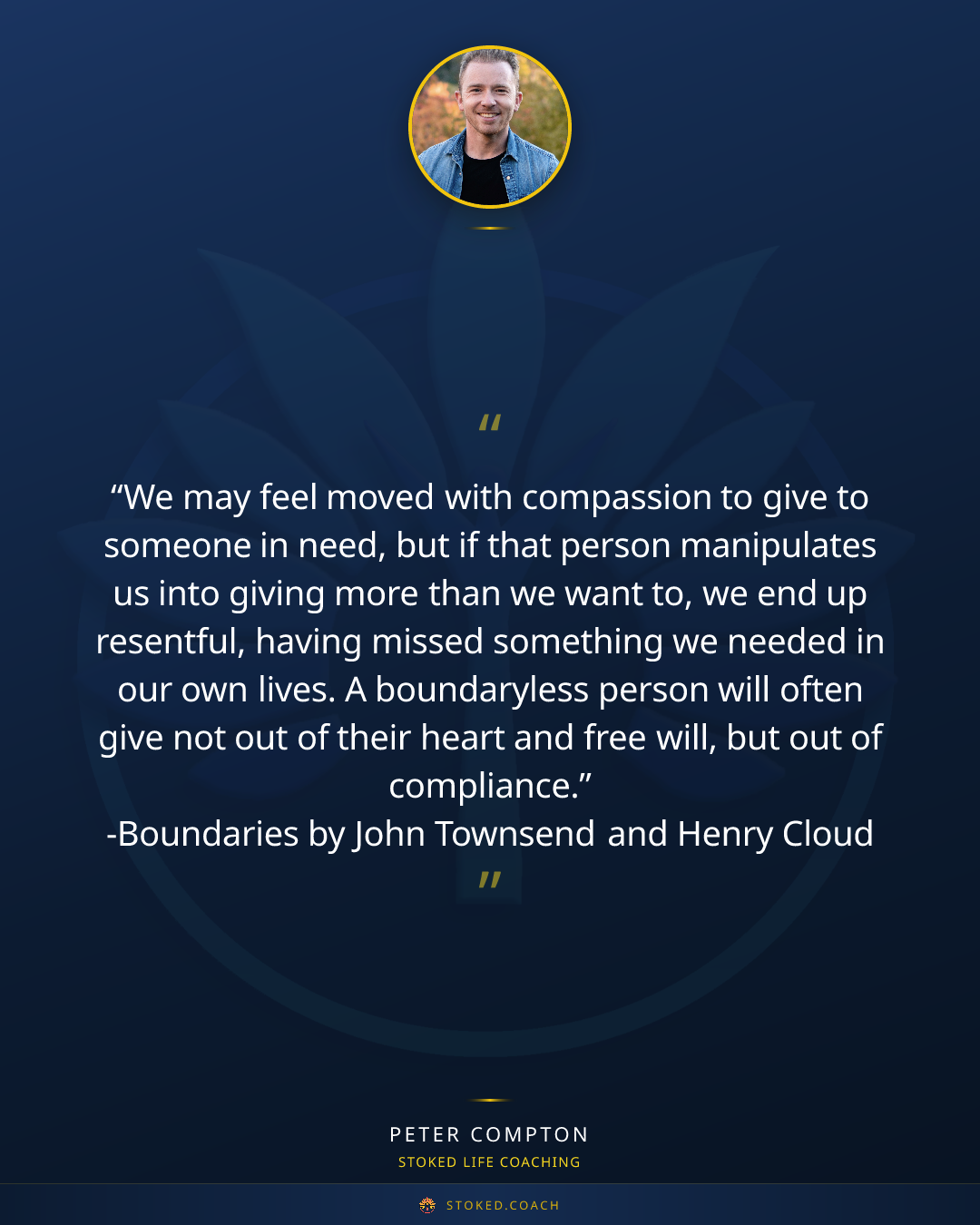 “We may feel moved with compassion to give to someone in need, but if that person manipulates us into giving more than we want to, we end up resentful...